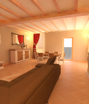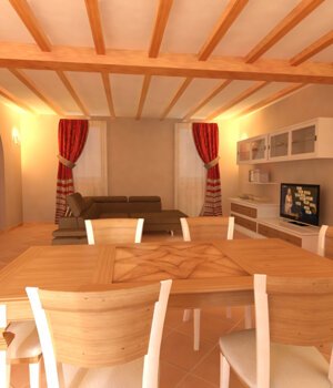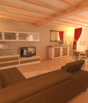 Progetto preliminare di arredo interno di un cascinale ristrutturato con arredo in stile classico ma in chiave moderna