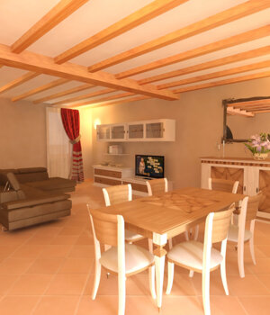Preliminary design of interior decoration of a restored farmhouse with classic style furniture but in modern style