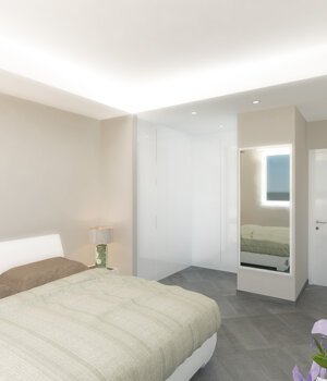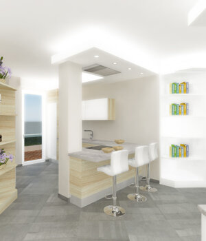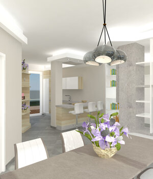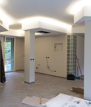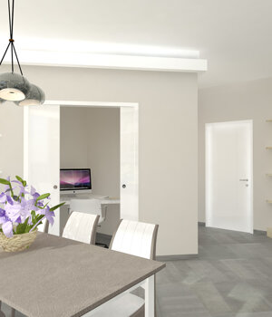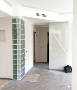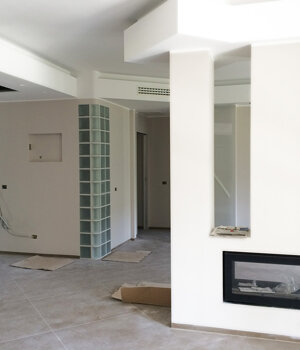 Ristrutturazione appartamento in complesso di villette a schiera con realizzazione nuova distribuzione interna, nuovi impianti idrico sanitario, riscaldamento ed elettrico.