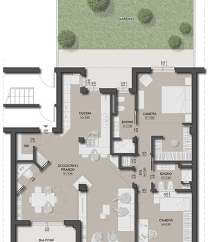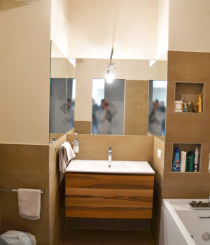 Renovation apartment in complex of terraced houses with new internal distribution, new sanitary, heating and electrical water systems.