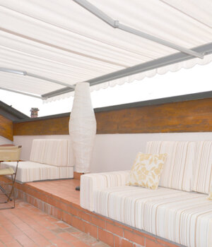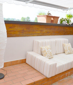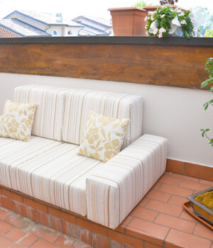 Realizzazione di arredo su misura per trasformare un gradone antiestetico e inutile in un elemento d'arredo per sfruttare al meglio lo spazio di una bella terrazza affacciata sulla campagna cremasca.