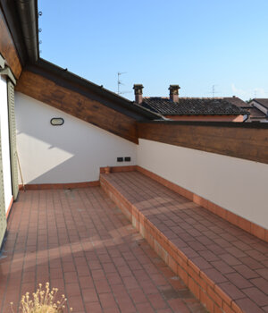 Design of a pocket terrace on the roof of a rustic building in Crema (Cr).